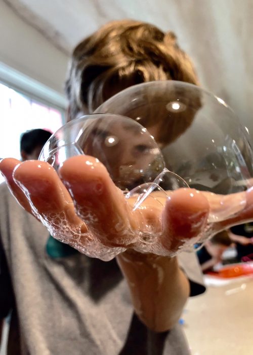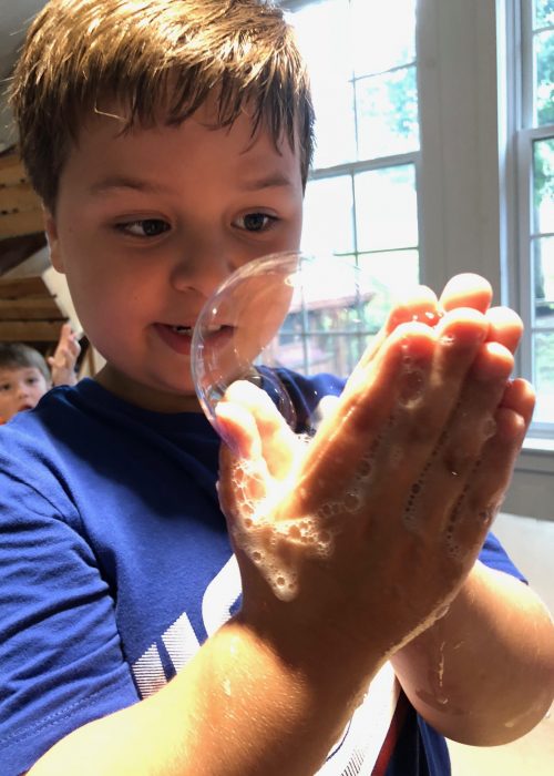The last lesson revolved around bubbles, and how they “fly” or float away. A bubble and the air trapped inside of it weigh next to nothing. To achieve a float, the bubble hitches a ride on a gas slightly denser than the air trapped inside of it (otherwise known as carbon dioxide). While understanding bubbles may be different from our airplanes lesson of the day, overall this sure was a fun way to end the week!