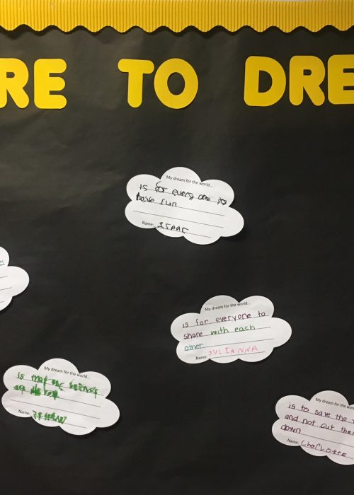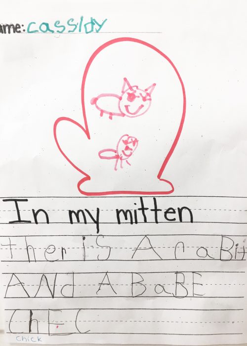 The students in Ms. Kennedy’s pre-k room have been studying all about Martin Luther King Jr. and the letter “M”. The morning lessons focus on Peace. The children have learned about peaceful behavior and brainstorm ways to grow kindness every day. These amazing children are writing their own sentences, too! They had lots of fun thinking about what they would want in their mittens.