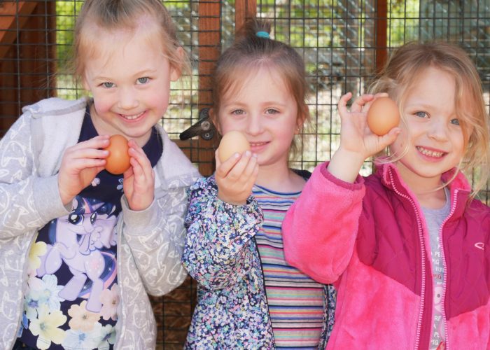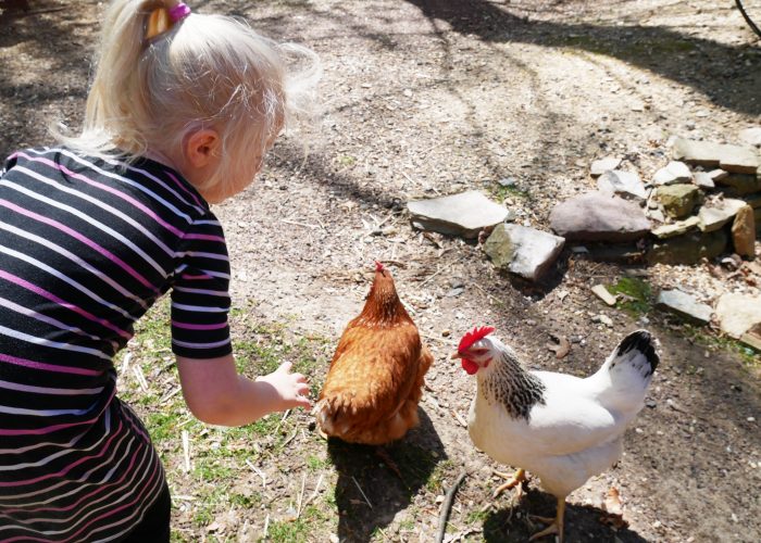 Our feather friends have been with us since they were 2 days old and are now just over 2 years old! The children had the opportunity to raise and care for them, experience joys such as the first egg and the their first birthday party.