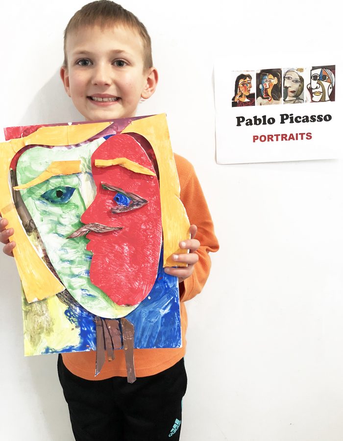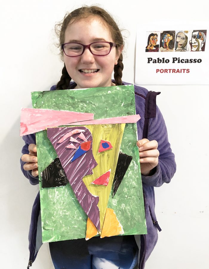 Honoring Picasso’s artistic style, the 1st-5th grade students created their own portraits in Mr. Jordan’s art class. The 3rd through 5th graders made three-dimensional forms, whereas the 1st & 2nd grade students used pastels. These colorful creations surely capture each child’s unique personality!