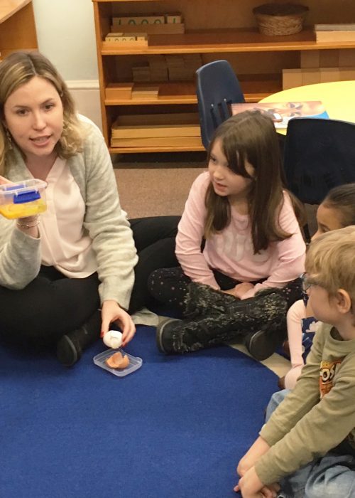 And one of the beautiful things about our students is that external differences between one person and another don’t usually phase them. Children may notice that someone is a different color from them (much like two different-colored eggs, as seen in photos from the class lesson), or that a peer speaks a different language, but that doesn’t seem to matter. Through lessons like this, Ms. Briggs reinforces acceptance of others and helps her students see that these differences are not a big deal at all! Like the different-colored eggs example used in Ms. Briggs classroom, we are all the same on the inside regardless of how we look on the outside. Our hope and dream is that our students will carry these lessons throughout their lives, and spread kindness and acceptance wherever they go!