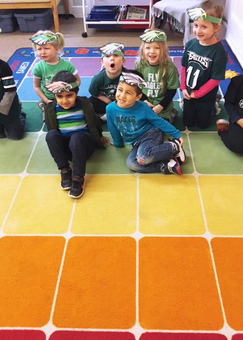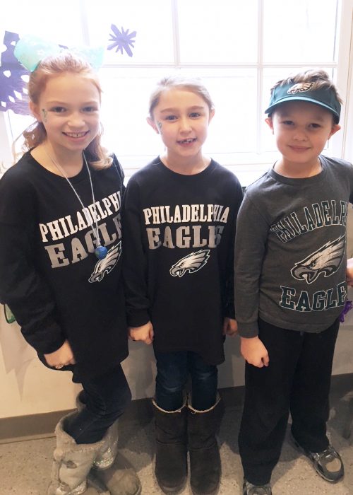 The students at Trevose Day School were so excited to show their school spirit for their home team, The Eagles! Many wore Eagles shirts and dressed in green! The students also gathered to sing “Fly Eagles Fly” with their music teacher, Marc Giovanetti.
