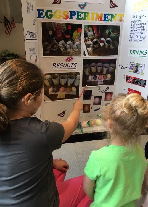 Students spent the morning demonstrating and presenting their projects to all the younger students in the school, who were so excited to listen to the presentations from the “big kids”! In the afternoon, parents from all levels of the school stopped by to support the students and learn some interesting science facts, too.